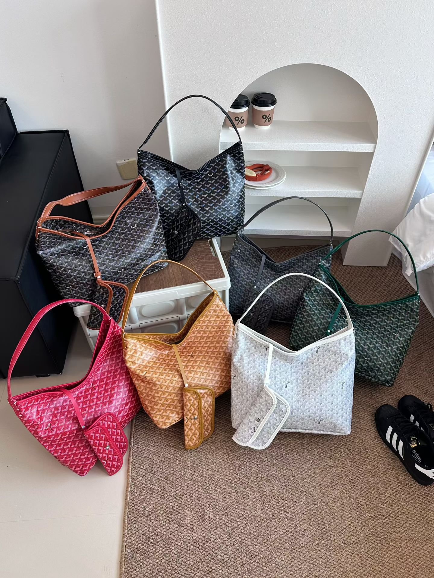 green, brown, black, red, white