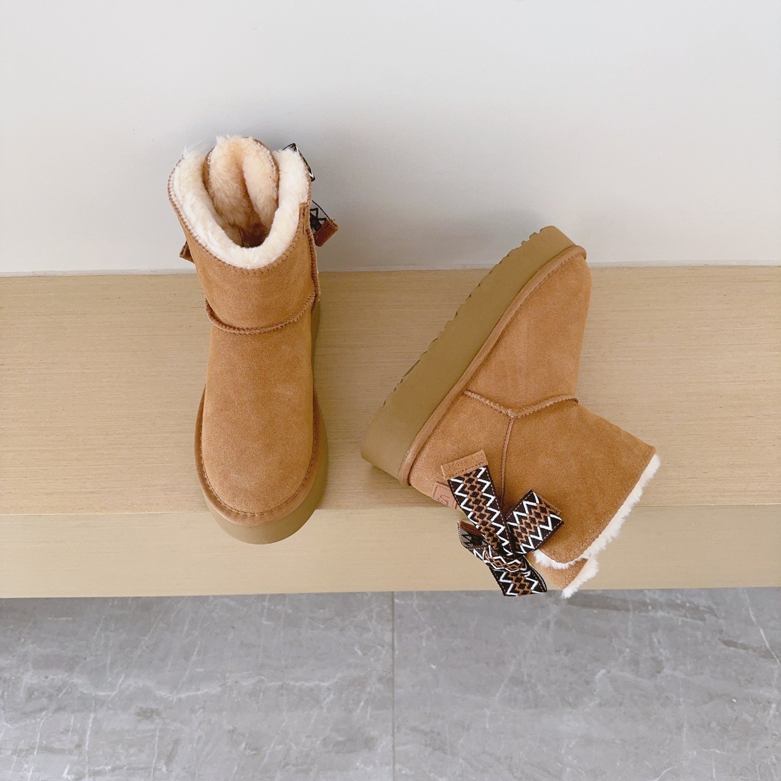 UGG Ethnic style ribbon ankle snow boots